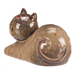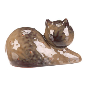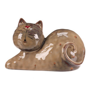 Dotaz na produktKeramická figurka kočky v ležící pozici je zpracována v přírodních hnědých odstínech s jemnými tečkami, které dodávají dekoraci zajímavý vizuální efekt. Povrch je hladký a lesklý, což podtrhuje detailní zpracování tvaru i výraz obličeje. Velikost L umožňuje umístění na poličku, komodu nebo stůl jako decentní doplněk interiéru. Figurku lze snadno postavit díky stabilnímu provedení a je vhodná pro různé styly bydlení.