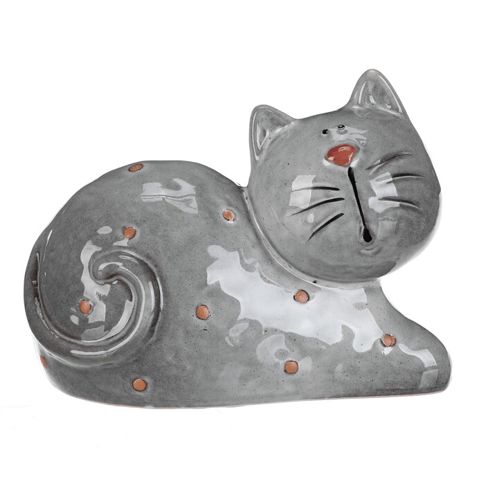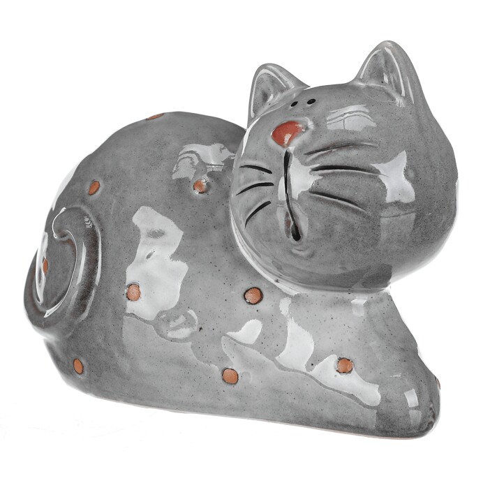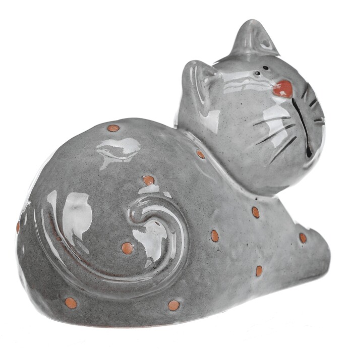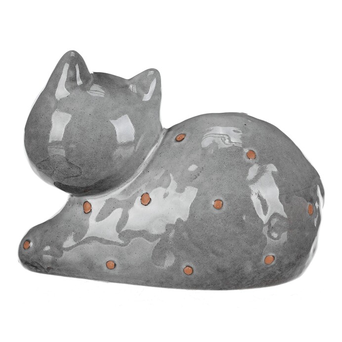 Dotaz na produktKeramická figurka kočky v šedém provedení představuje dekorativní prvek vhodný pro umístění na poličku, komodu nebo stůl. Ležící pozice a jemné detaily, jako jsou výrazné červené nos a tmavé linky na obličeji, dodávají figurce osobitý charakter. Povrch je hladký a lesklý, což podtrhuje kvalitní zpracování materiálu. Velikost M umožňuje snadné začlenění do různých interiérů, kde přispívá k příjemné atmosféře. Figurku lze jednoduše postavit na rovný povrch bez potřeby dalšího upevnění.