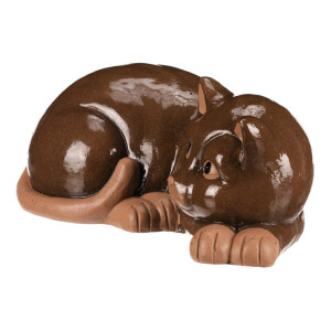 Dotaz na produkt Na splátky ještě dnesLežící keramická kočička v tmavě hnědé barvě s roztomilým výrazem je věrným společníkem, který dodá vaší zahradě nebo terase osobitý šarm a kouzlo. Tento půvabný doplněk zkrášlí každý prostor a vnese do něj nádech hravosti a pohody.