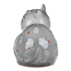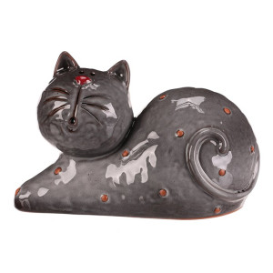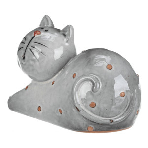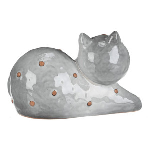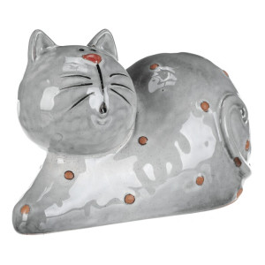 Dotaz na produktKeramická figurka kočky v ležící pozici zaujme svým šedým glazovaným provedením s jemnými hnědými detaily. Její hladký povrch a zaoblené tvary vytvářejí příjemný vizuální efekt, který se hodí do různých interiérů. Figurku lze snadno postavit na poličku, komodu nebo stůl jako dekorativní prvek. Velikost XL zajišťuje výraznou přítomnost v prostoru a přispívá k atmosféře domova.