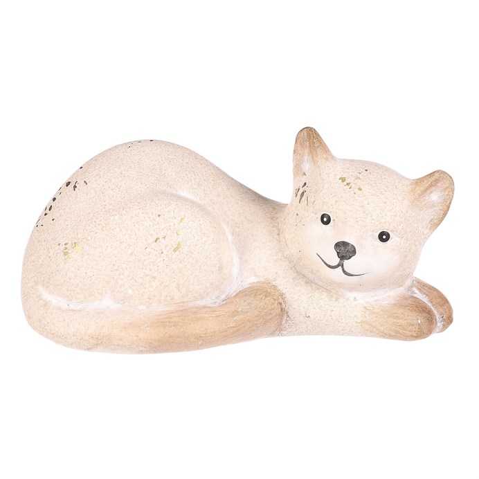 Dotaz na produktLežící keramická kočička ve světle béžovém odstínu a s roztomilým výrazem je věrným společníkem, který dodá vaší zahradě nebo terase osobitý šarm a kouzlo. Tento půvabný doplněk zkrášlí každý prostor a vnese do něj nádech hravosti a pohody.