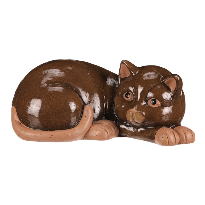 Dotaz na produkt Na splátky ještě dnesLežící keramická kočička v tmavě hnědé barvě s roztomilým výrazem je věrným společníkem, který dodá vaší zahradě nebo terase osobitý šarm a kouzlo. Tento půvabný doplněk zkrášlí každý prostor a vnese do něj nádech hravosti a pohody.