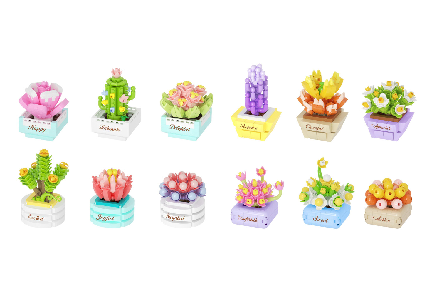 Dotaz na produktKOCO stavebnice mini rostliny. 12 různých ks v display boxu. Obsahuje kostičky, nástroj na oddělení kostiček, podrobný obrázkový návod na složení.