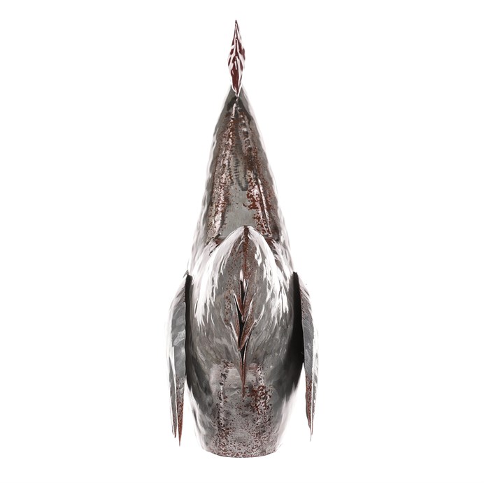 Dotaz na produktTato kovová dekorace v podobě slepice je skutečně netradiční a originální zvířecí ozdobou, která se snadno stane středem pozornosti. Je v kovové až stříbrné barvě a místy doplněna hnědými až narezavělými odstíny. Působí dojmem opotřebeného ozdobného předmětu s dlouhou historií. S celoročním využitím je ideální pro interiéry, kde může vytvořit nádhernou a nápaditou atmosféru. Slepice může působit skvěle sama o sobě, nebo být součástí ucelené kompozice s ostatními figurkami, květinami či nejrůznějšími přízdobami. Hodí se spíše do vnitřních, nebo krytých prostor, kde nebude čelit povětrnostním vlivům.