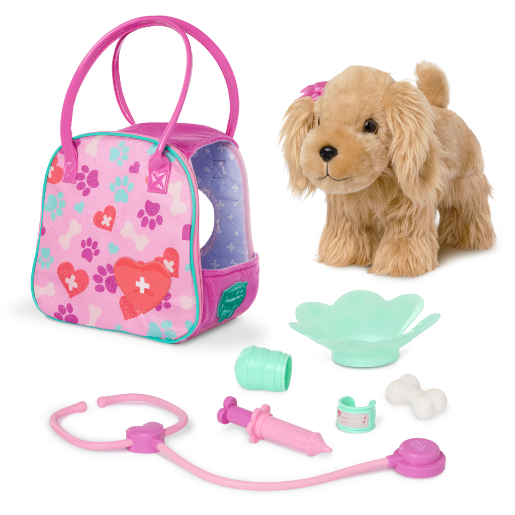Obsah balení: kabelka, plyšové štěně, 6 veterinářských doplňků