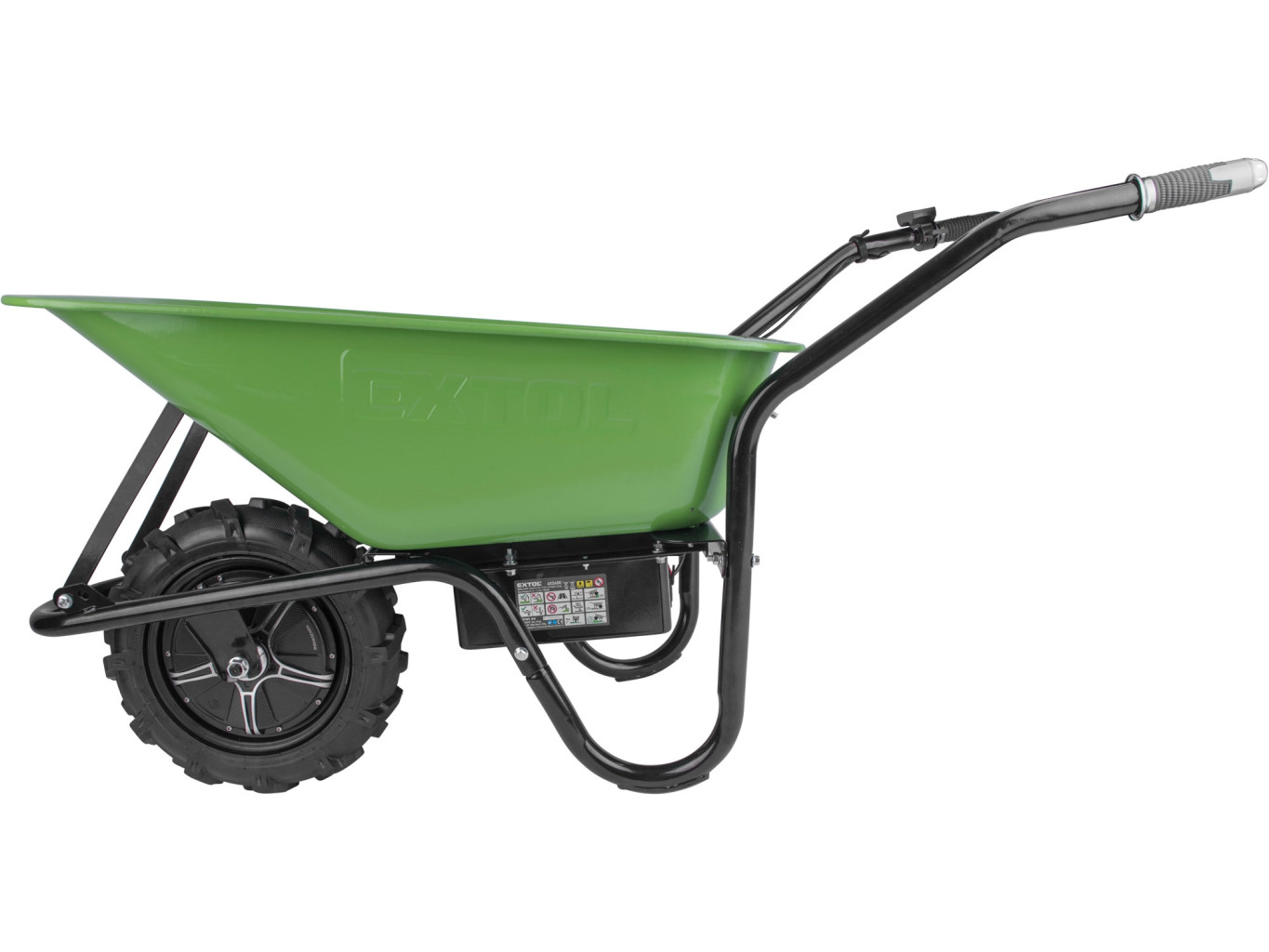 Dotaz na produkt Na splátky ještě dnesPřepravní aku kolečko s pomocným elektrickým pohonem je určeno pro přepravu tuhých, sypkých nebo hustých materiálů. Díky elektrickému pohonu se výrazně urychlí přeprava materiálu a zároveň sníží únava obsluhy, což významně zvýší produktivitu práce. Kolečko má na pravé rukojeti ovládací panel a pomocí palce si může nastavit okamžitou rychlost jak do předu, tak dozadu. Na ovládacím panelu lze nastavit jízdu dopředu nebo dozadu, brzdu a je tam ukazatel nabití baterie. Kolečka jsou poháněná nejmodernějším „brushless" motorem. Tento nový typ motoru má vyšší životnost, je výkonnější a má menší spotřebu el. energie než klasické motory s uhlíkovými kartáči. Pokud je to nutné, lze motor kompletně vypnout a používat kolečko jen na ruční pohon. Elektrická brzda se používá pokud potřebujete zamezit pohybu kolečka na místě. Pneumatika má hluboký vzorek do terénu. Kolečko je dodáváno s kovovou korbou o objemu 80l, bezešvě lisovanou z jednoho kusu plechu. Pro přepravu lehčího a objemného nákladu lze dokoupit samostatně prodávanou plastovou korbu o objemu 100l. Všechny náhradní korby mají předvrtané díry pro snadnou montáž. Kolečko má krytí IP64, což mu umožňuje dočasnou práci ve vlhkém prostředí, případně umývání vapkou, ale není určeno k trvalému provozu nebo skladování ve vlhkém prostředí. Zdrojem elektrické energie jsou dvě olověné 12V/12Ah baterie. Baterie má ochranu proti vybití pod minimální úroveň, před přetížením při nadměrném odběru proudu, přebitím, zkratem a náhlému zvýšení teploty při práci.