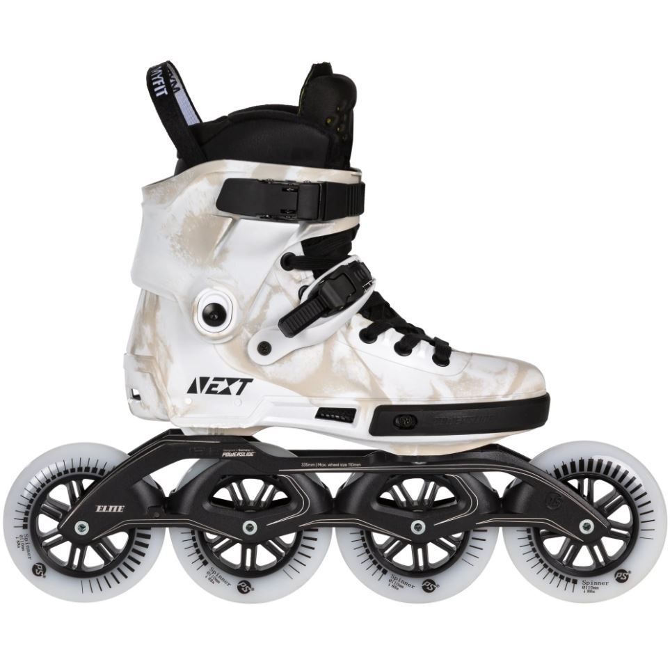 Kolečkové brusle Powerslide Next Marble White 110 Trinity -jsou stylové, vysoce výkonné městské freeridové inline brusle.