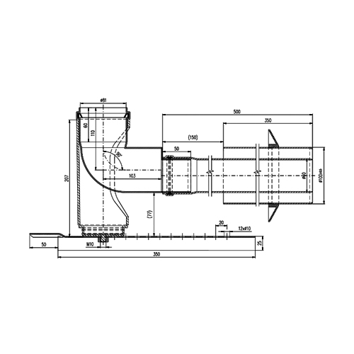 Koleno pateční 60/100-80 s konzolí, Al/PPs