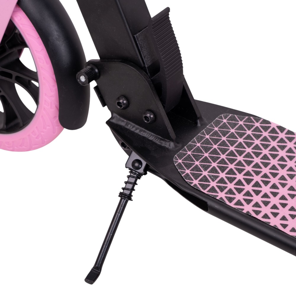 Praktický stojánek zajistí, že koloběžka nemusí ležet na zemi, když ji zrovna nepoužíváte. Ergonomicky tvarovaná madla a nízký nášlap pak zajistí maximální pohodlí i při delších trasách.
