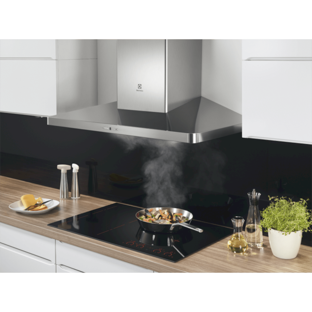 Komínková digestoř ELECTROLUX EFF90560OX o velikosti 90 cm. Technologie 700 Hob2Hood® znamená, že varná deska automaticky ovládá nastavení odsavače par. Během vaření upravuje intenzitu odsávání buď podle teploty, nebo podle toho, kolik varných zón právě používáte. Můžete se tak více soustředit na přípravu chutných pokrmů.