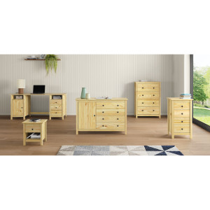 Dotaz na produkt Na splátky ještě dnesmateriál masiv borovice, lakované provedení kovové úchytky v barevném provedení černěná mosaz 1 dvířka a 4 zásuvky s kovovými pojezdy