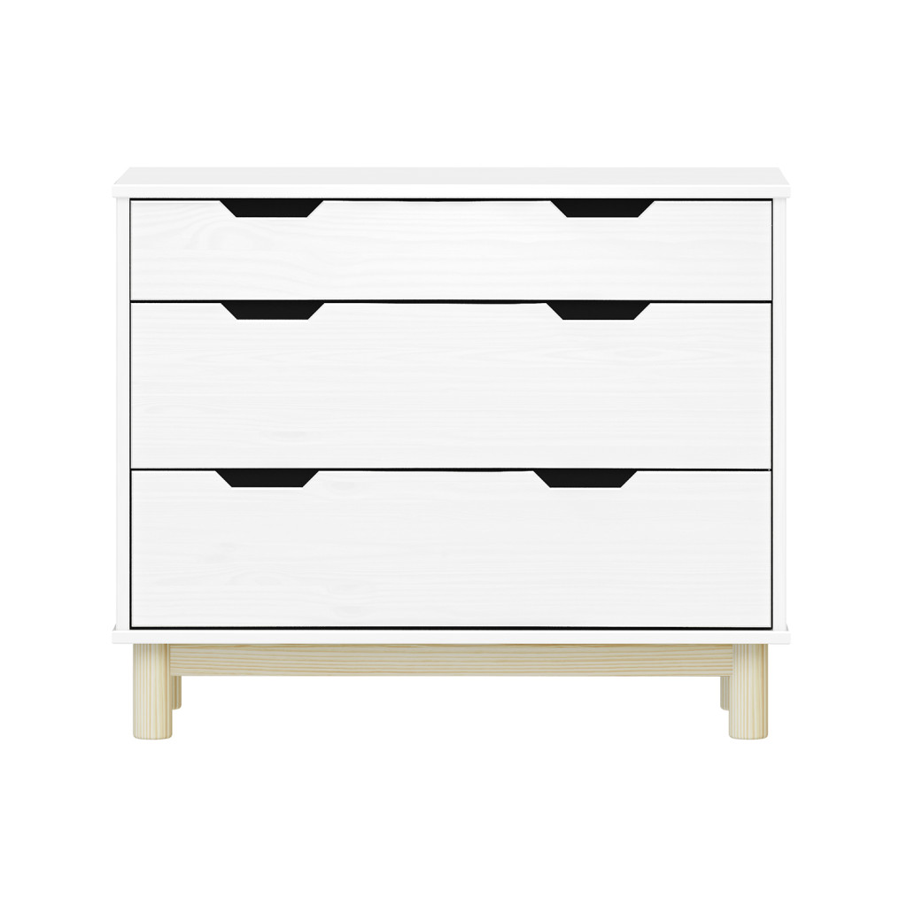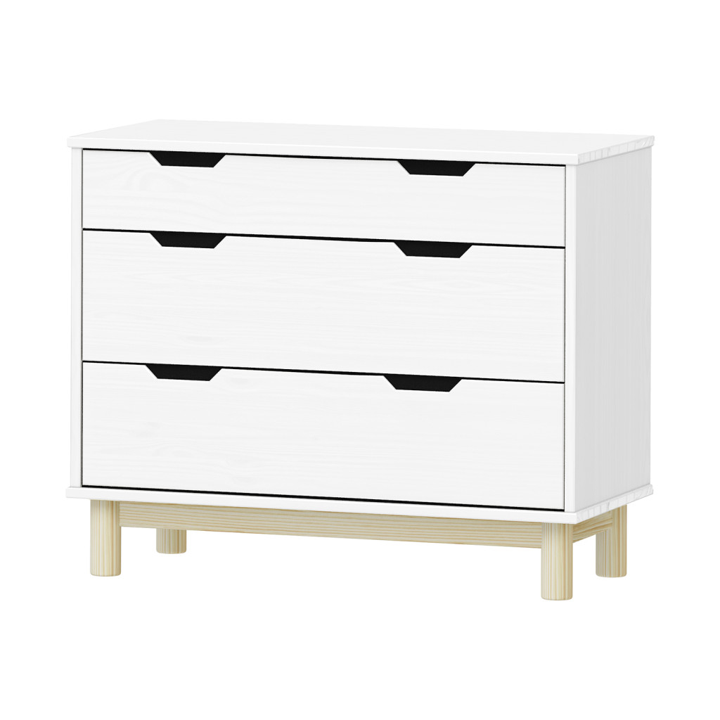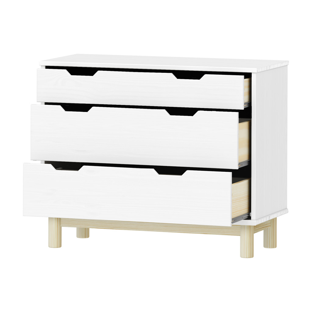 Dotaz na produkt Na splátky ještě dnesmateriál masiv borovice, barevné provedení bílý lak 1 menší a 2 větší zásuvky s kovovými pojezdy