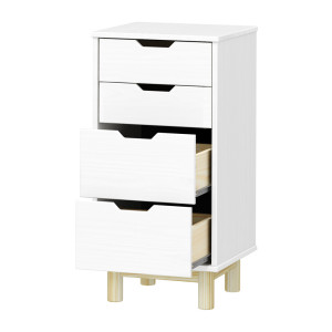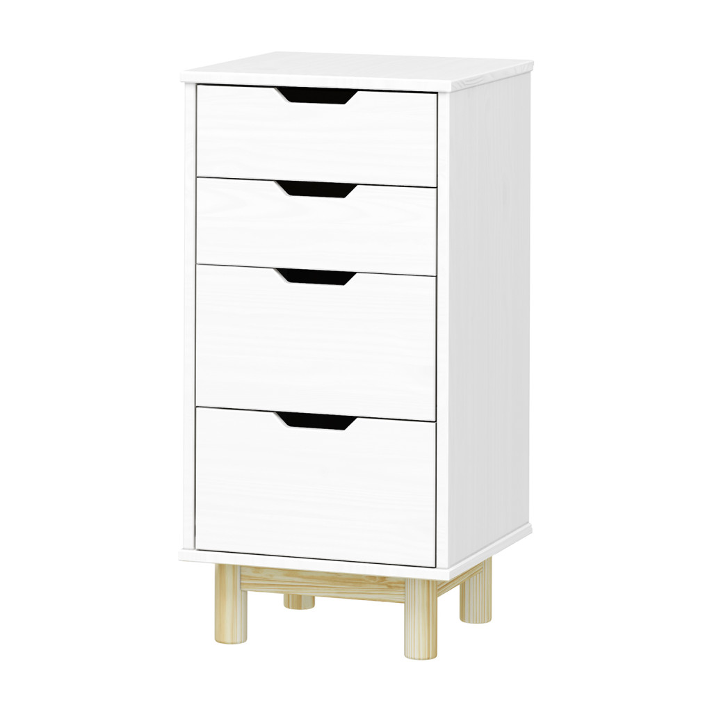 Dotaz na produkt Na splátky ještě dnesmateriál masiv borovice, barevné provedení bílý lak 2 menší a 2 větší zásuvky s kovovými pojezdy