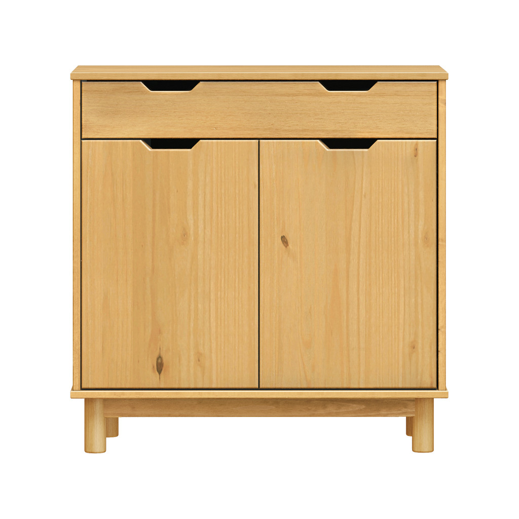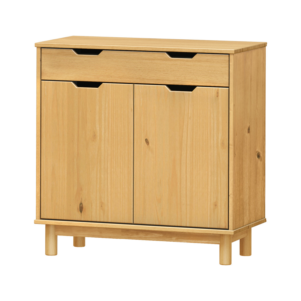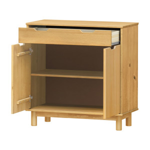 Dotaz na produkt Na splátky ještě dnesmateriál masiv borovice voskovaná v medovém odstínu 1 zásuvka s kovovými pojezdy, 2 dvířka, 1 police