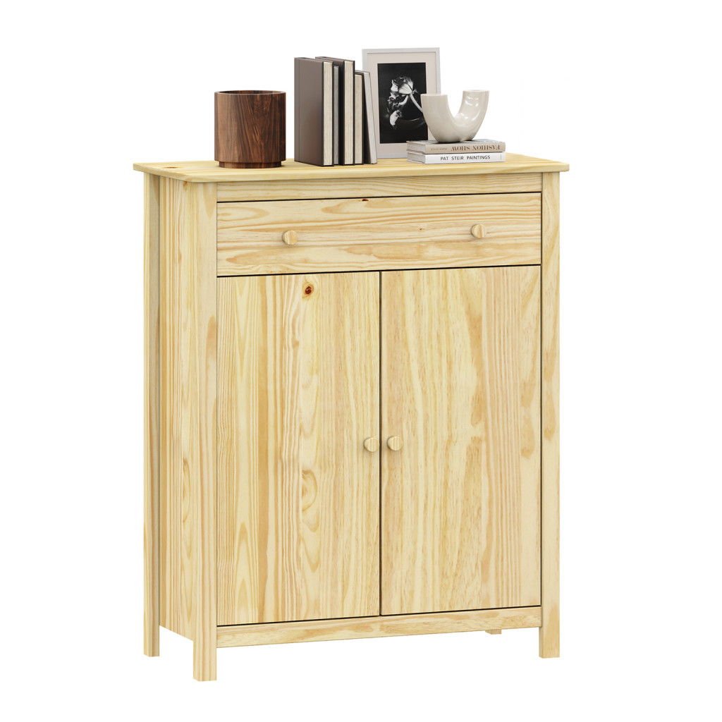 Dotaz na produkt Na splátky ještě dnesmateriál masiv borovice, lakované provedení 1 zásuvka s kovovými pojezdy, 2 plné dveře, 1 police maximální nosnosti uvedeny v návodu k montáži