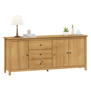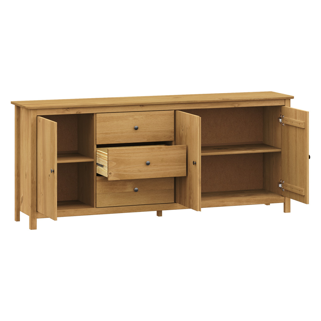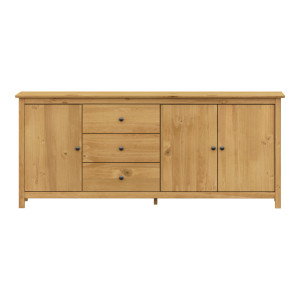 materiál masiv borovice voskovaná v medovém odstínu kovové úchytky v barevném provedení černěná mosaz 3 zásuvky s kovovými pojezdy, 3 plné dveře, 2 police maximální nosnosti uvedeny v návodu k...