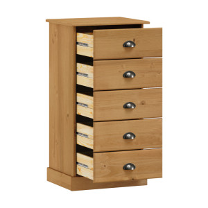 Dotaz na produkt Na splátky ještě dnesmateriál masiv borovice voskovaná v medovém odstínu 5 zásuvek s kovovými úchytkami a pojezdy