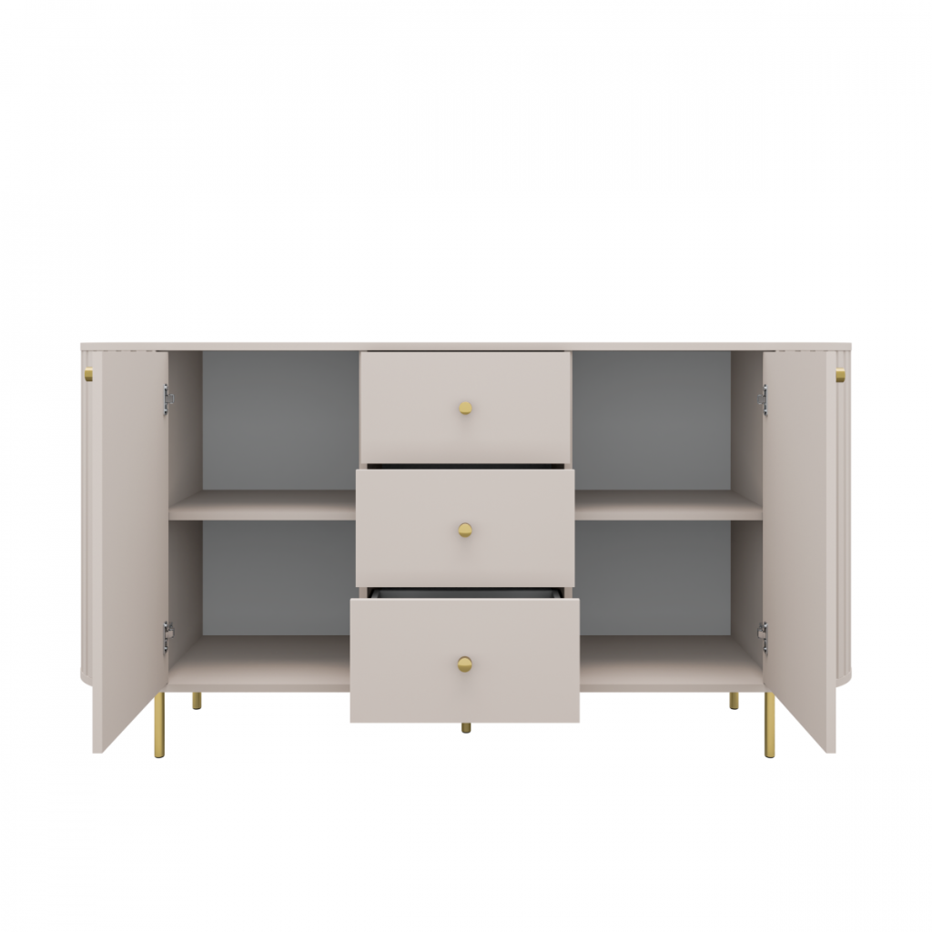 Objevte kolekci nábytku Orvelo, která představuje minimalismus ozvláštněný precizními frézovanými detaily a vnáší do interiéru zcela nový rozměr elegance. Barevné provedení v jemných zemitých odstínech tvoří harmonický základ, černé a zlaté akcenty dodají lehkost a moderní charakter. Kolekce byla navržena tak, aby každý prvek – od vitrín a komod až po konferenční stolky a TV skříňky – mohl být použit samostatně a zároveň ladil jako celek.