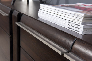 Dotaz na produkt Na splátky ještě dnesKomoda ze sektorové řady PORTI značkového výrobce Szynaka. Komoda má 3 dvířka. Systém PORTI je exkluzivní kolekce navržena v moderním duchu. Struktura ušlechtilého masivního dubu na přední straně a přírodní dýha na korpusu zdůrazňuje velmi klasickou barvu čokoládový dub. Opakující se prvek riflování v kombinaci s černým sklem je dekorační motiv, který se odráží v každém bloku. Celá řada se vyznačuje elegancí a jednoduchými tvary, které zaručují plné využití prostoru. Barevné provedení - čokoládový dub. Elegantní úchyty jsou z kovu. Dodáváme ve smontovaném stavu.