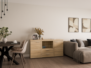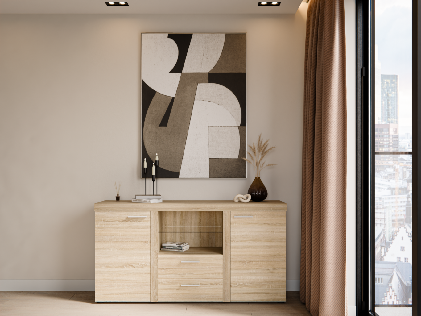 Dotaz na produkt Na splátky ještě dnesKomoda Rizo je nejen skvělým doplňkem k bytové stěně Rizo. Stejně výborně poslouží jako samostatný kus nábytku. Komoda má univerzální využití a nabízí dostatek úložného prostoru. Komoda je vyrobena z odolného a stálobarevného lamina. Komoda je dodávaná v demontu. Součástí balení je schematický montážní návod, včetně všech potřebných spojovacích prvků. Vyobrazené doplňky, LED osvětlení a dekorace nejsou v ceně.
