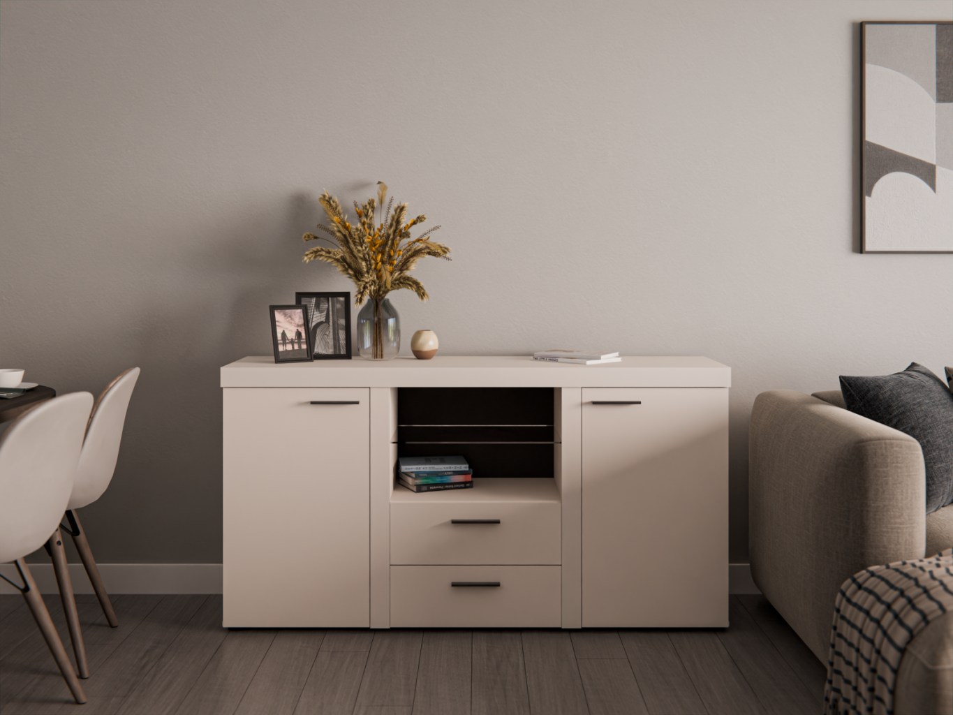 Dotaz na produkt Na splátky ještě dnesKomoda Rizo je nejen skvělým doplňkem k bytové stěně Rizo. Stejně výborně poslouží jako samostatný kus nábytku. Komoda má univerzální využití a nabízí dostatek úložného prostoru. Komoda je vyrobena z odolného a stálobarevného lamina. Komoda je dodávaná v demontu. Součástí balení je schematický montážní návod, včetně všech potřebných spojovacích prvků. Vyobrazené doplňky, LED osvětlení a dekorace nejsou v ceně.