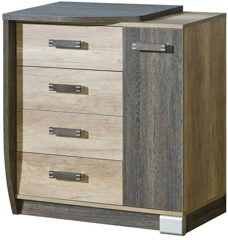 Dotaz na produkt Na splátky ještě dnesKomoda ze sektorové řady ROMERO značkového výrobce Dolmar. Nábytek je vyroben z vysoce kvalitního lamina, odolného proti poškrábání. Korpus je v barvě arusha, dvířka jsou v kontrastní barvě dub canyon. Komoda má 1 dvířka a 4 zásuvky. Možnost vybrat si z levého nebo pravého provedení. Výrazné boky a čela systému ROMERO dodají charakter každému interiéru. Nemalou pozornost přitáhnou také originální úchyty, vyrobené v kombinaci materiálů LTD - plast. Většina skříněk sestavy je v nabídce v levém i pravém provedení, takže si jednoduše můžete sestavit obývací pokoj, ložnici či kancelář podle svých vlastních představ. Dodáváme v demontovaném stavu.