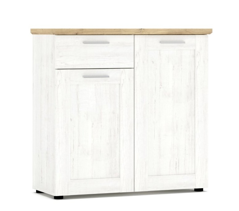 Komoda je dvoudveřová. Disponuje také jednou praktickou zásuvkou.