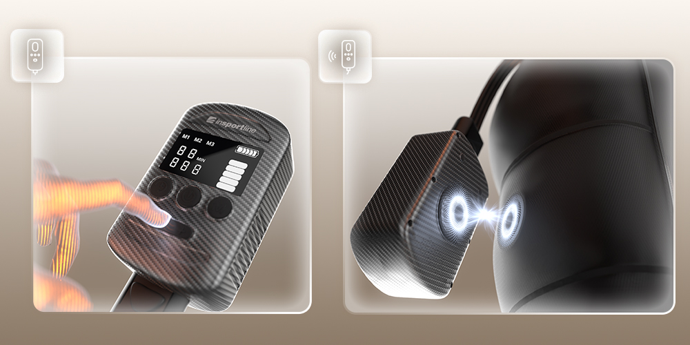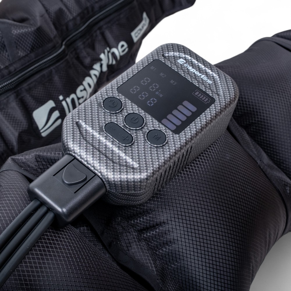 inSPORTline Compflex má intuitivní a kompaktní ovladač, který umožňuje přesné přizpůsobení masáže individuálním potřebám. Nabízí čtyři masážní režimy – sekvenční, cyklický, manuální a cílený – a k tomu šest úrovní tlaku, díky nimž si snadno nastavíte intenzitu od jemné stimulace až po hlubší regeneraci. Délku masáže lze volit v rozmezí 10–30 minut, takže si vždy přizpůsobíte terapii svému časui komfortu.