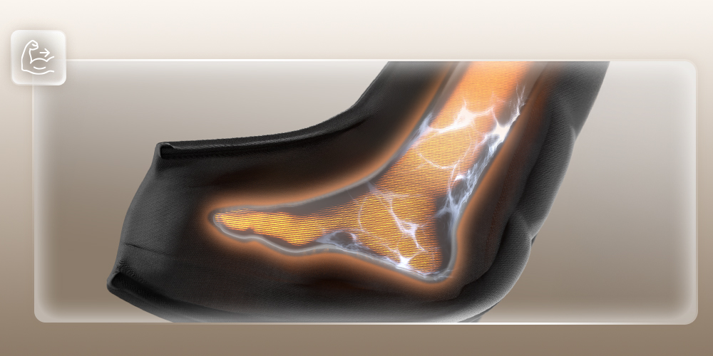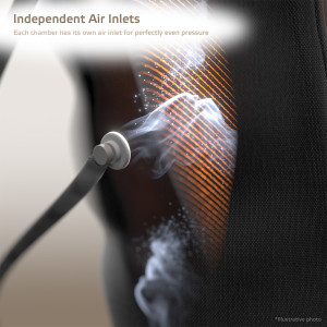 Kompresní návleky jsou vybaveny 6 překrývajícími se vzduchovými komorami, které se postupně nafukují a vyfukují, tím napodobují přirozené svalové kontrakce. Tyto kontrakce zlepšují regeneraci a odolnost svalů, což vám umožňuje vrátit se k tréninku mnohem rychleji.