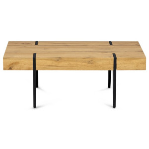Konferenční stůl o rozměrech 110x60x42 cm kombinuje desku z MDF s dekorem divokého dubu a pevné nohy z černě matného kovu, které zajišťují stabilitu a dlouhou životnost. Deska s tloušťkou a strukturou připomínající přírodní dřevo nabízí odolný a snadno udržovatelný povrch vhodný pro každodenní použití. Kovové nohy jsou navrženy v jednoduchém, ale robustním tvaru, který podtrhuje moderní industriální styl stolku. Tento konferenční stolek je ideální volbou pro obývací pokoje, kde poskytuje dostatek prostoru pro odložení nápojů, knih či dekorací. Díky svému provedení a rozměrům se snadno kombinuje s různými typy nábytku a interiérových stylů.