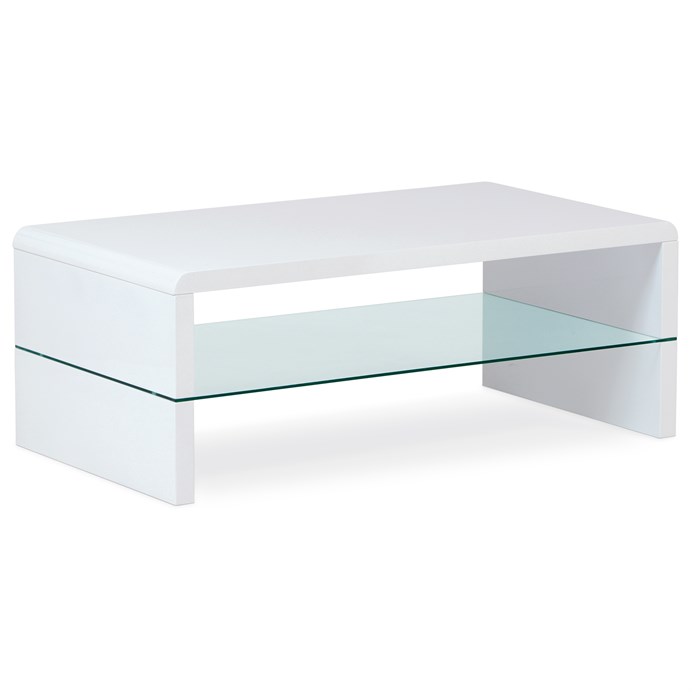 Moderní konferenční stolek značky Autronic je skvělým doplňkem do každého obývacího pokoje. S elegantním bílým lesklým povrchem a praktickou skleněnou policí nabízí styl i funkčnost. Vyroben z kvalitního MDF materiálu, je odolný a snadno se udržuje. Obdélníkový tvar a čisté linie dodávají stolku moderní vzhled, který se hodí do různých interiérů. Tento stolek poskytuje dostatek úložného prostoru pro vaše časopisy, knihy nebo dekorace.