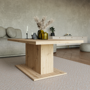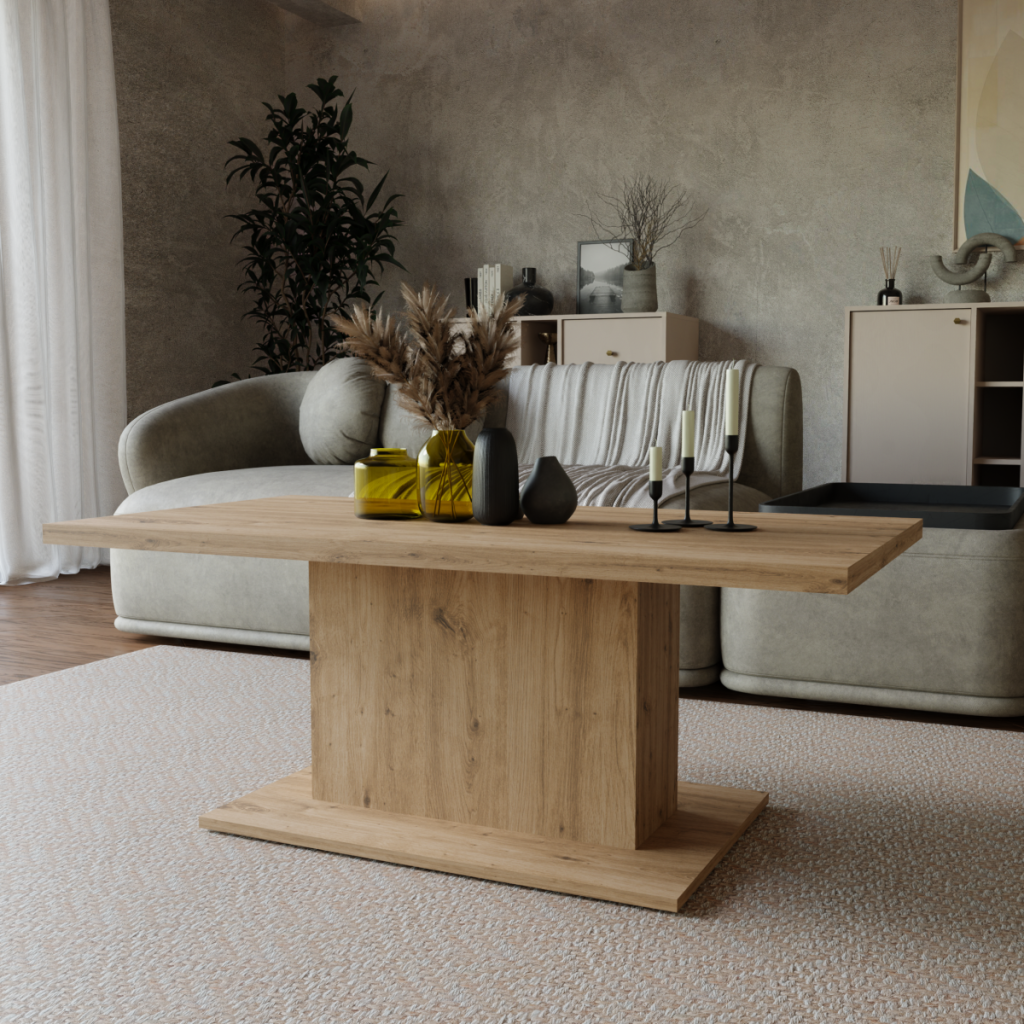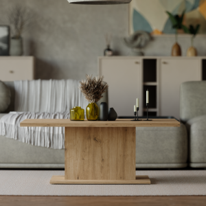 Dotaz na produkt Na splátky ještě dnesKonferenční stolek Denis je atraktivní stolek, který je vyrobený z lamina ve velmi oblíbeném a moderním dekoru dub artisan. Stolek je dostatečně velký na vše, co si budete potřebovat odložit. Hrnek s kávou nebo čajem, talíř, knihu, telefon, notebook, nebo klidně i unavené nohy po celodenním maratonu.Stolek je dodávaný v demontu. Součástí balení je montážní plánek včetně všech potřebných spojovacích materiálů.Vyobrazené doplňky a dekorace nejsou v ceně.