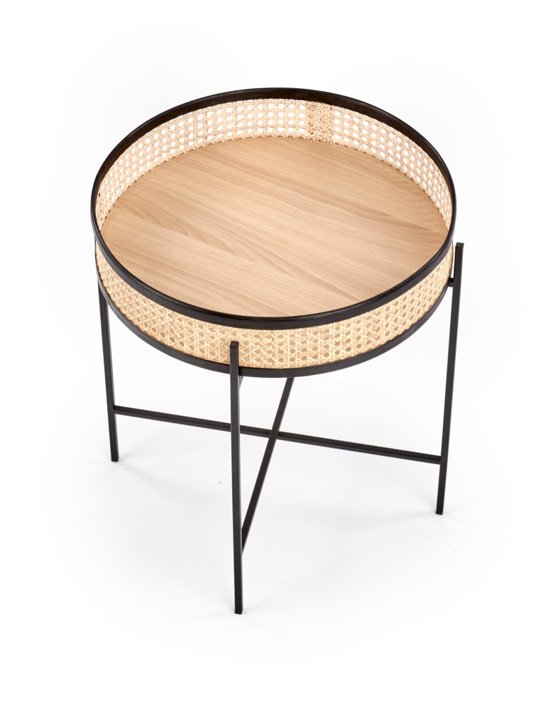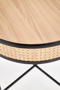 Konferenční stůl je vyroben v kombinaci dýhovaná MDF deska, ratan a práškované oceli. Konferenční stůl dodá svým nápaditým designem vašemu bydlení moderní a elegantní styl.