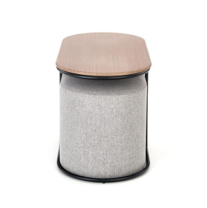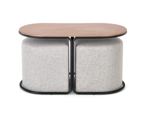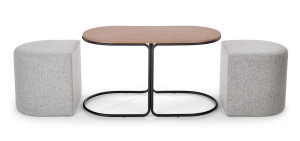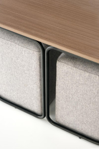 Dotaz na produkt Na splátky ještě dnesTento stolek dodáváme i s "boby", které jsou vyrobené z látky. Samotný stolek je vyroben z lamina, který stojí na kovových nohou.