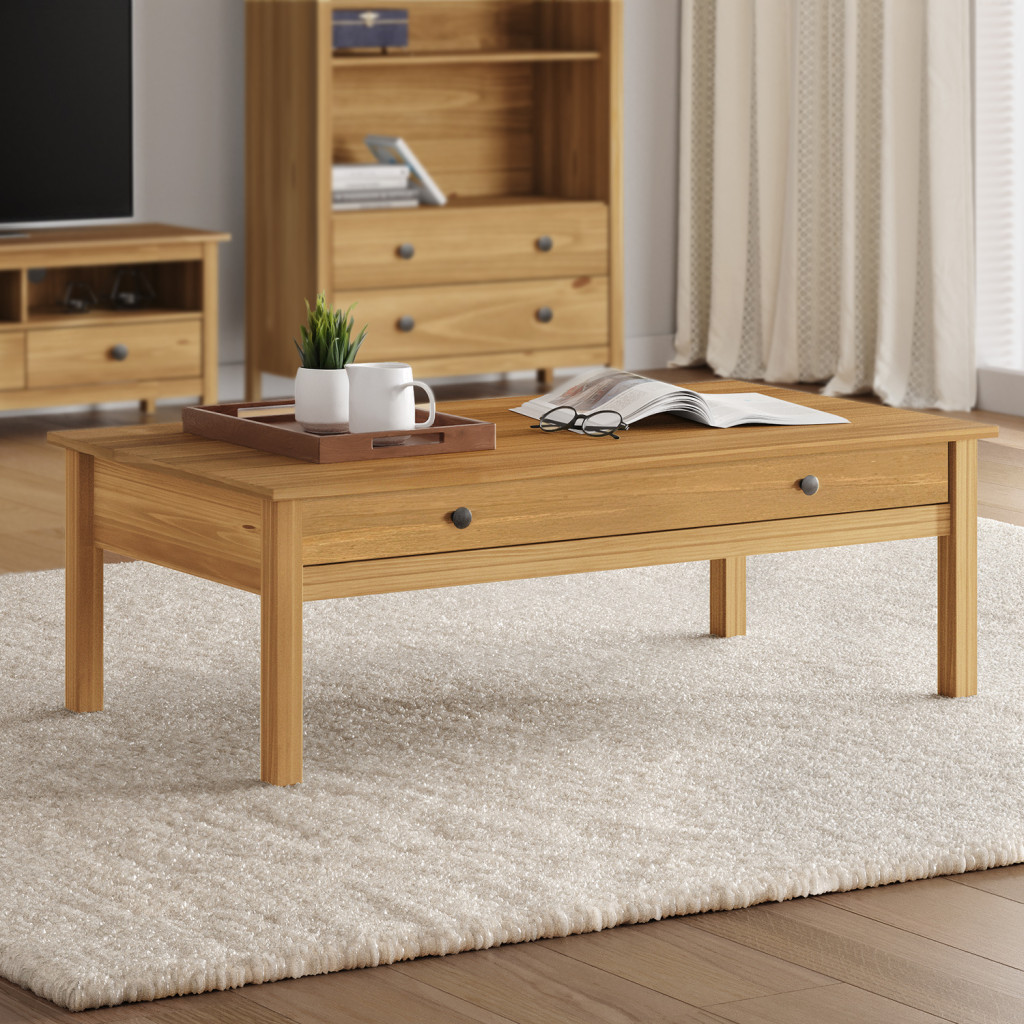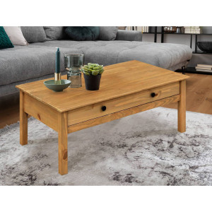Dotaz na produkt Na splátky ještě dnesmateriál masiv borovice voskovaná v medovém odstínu kovové úchytky v barevném provedení černěná mosaz široká zásuvka s kovovými pojezdy