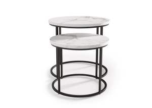 Konferenční stolek, který se dá rozšířit na dvě části. Barva stolku je bílý mramor.