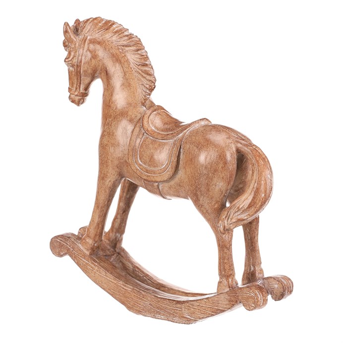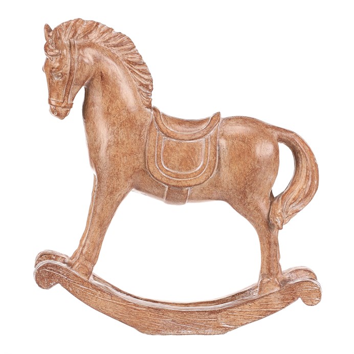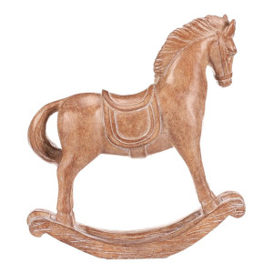Dotaz na produkt Na splátky ještě dnesTato soška houpacího koníka z polyresinu s povrchem dokonale napodobujícím dřevo přináší do vašeho domova příjemné oživení. S výškou 15 cm je ideální pro ozdobení poliček nebo stolů, zejména v zimním a vánočním období. Elegantní textura dřeva a roztomilý design koníka dodají každé místnosti dokonalý rustikální nádech pohody a sváteční nálady.