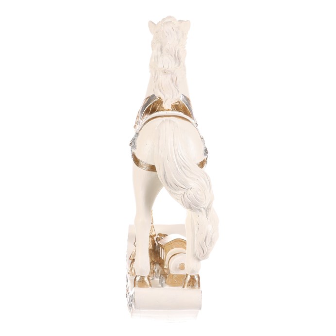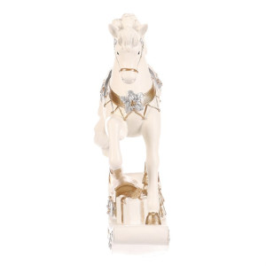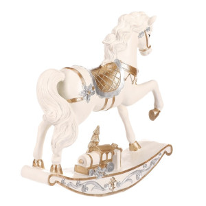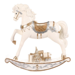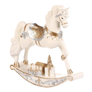 Dotaz na produktHoupací koník v tomto malebném, až slavnostním provedení přináší kouzlo sváteční atmosféry s puncem starých časů. Precizně zdobená světle krémová figurka z polyresinu s jemnými zlatými i stříbrnými detaily a dárkem na podstavci působí svátečně a velmi elegantně. Jedná se tak o skvělý doplněk vánoční výzdoby.