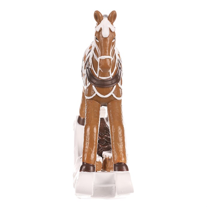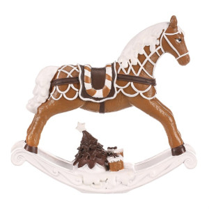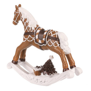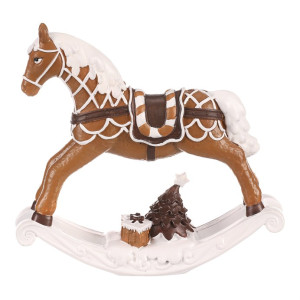Dotaz na produktVyzdobte si o vánočních svátcích poličku, stůl, nebo jiný vhodný prostor, touto úžasnou soškou v podobě houpacího koníka z polyresinu. Vypadá, jako by však byl vytvořen z perníku, či marcipánu a vyzdoben sladkou polevou. Koník samotný je v hnědé barvě, má barevné osedlání, přičemž spodní část je celá v bílém a doplněna hnědými dárečky a vánočním stromkem.