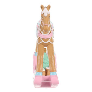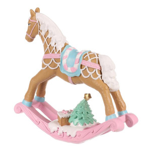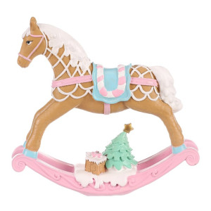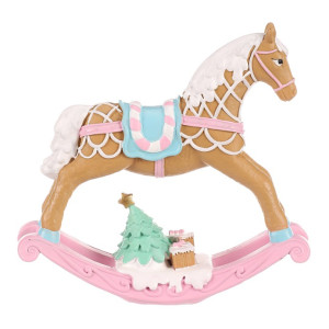 Dotaz na produktVyzdobte si o vánočních svátcích poličku, stůl, nebo jiný vhodný prostor, touto úžasnou pestrobarevnou soškou v podobě houpacího koníka z polyresinu. Vypadá, jako by však byl vytvořen z perníku, či marcipánu a vyzdoben sladkou polevou. Koník samotný je v hnědé barvě, má barevné osedlání, přičemž spodní část je celá v růžovém a doplněna hnědými dárečky a zeleným vánočním stromkem.
