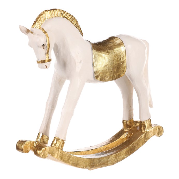 Dotaz na produktPřiveďte do svého vánočně vyzdobeného domova kouzlo starého řezbářství s naším houpacím koníkem o velikosti "L". Tato nevšední dekorace, vyrobena z polyresinu, přináší do vašeho interiéru jemnou atmosféru dřevěného umění. Svou bílo-zlatou kombinací barev dodává prostoru šlechtický nádech a luxusní vzhled. Houpací koník je ideální na postavení kdekoliv v domě, ať už na poličce, stole nebo jiném vhodném místě. Jeho detailní zpracování a vzhled, který věrně napodobuje dřevěnou figurku, z něj dělá sofistikovanou a půvabnou ozdobu, která vtiskne každému prostoru kousek tradičního vánočního kouzla.