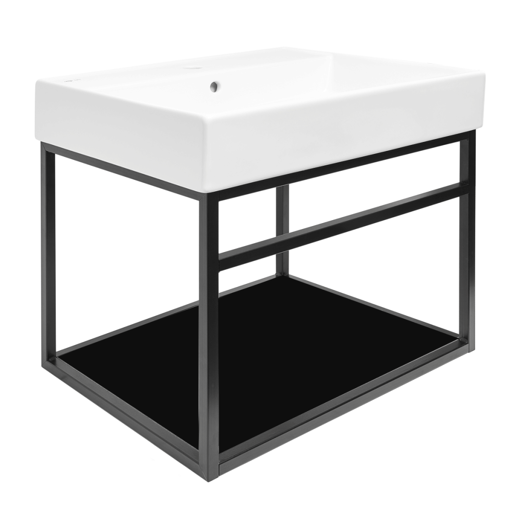 Dotaz na produkt Na splátky ještě dnesKonstrukce Naturel Industrial v černé barvě s keramickým umyvadlem a policí v černé matné barvě je vyrobena s cílem dodat vaší koupelně moderní a industriální vzhled.