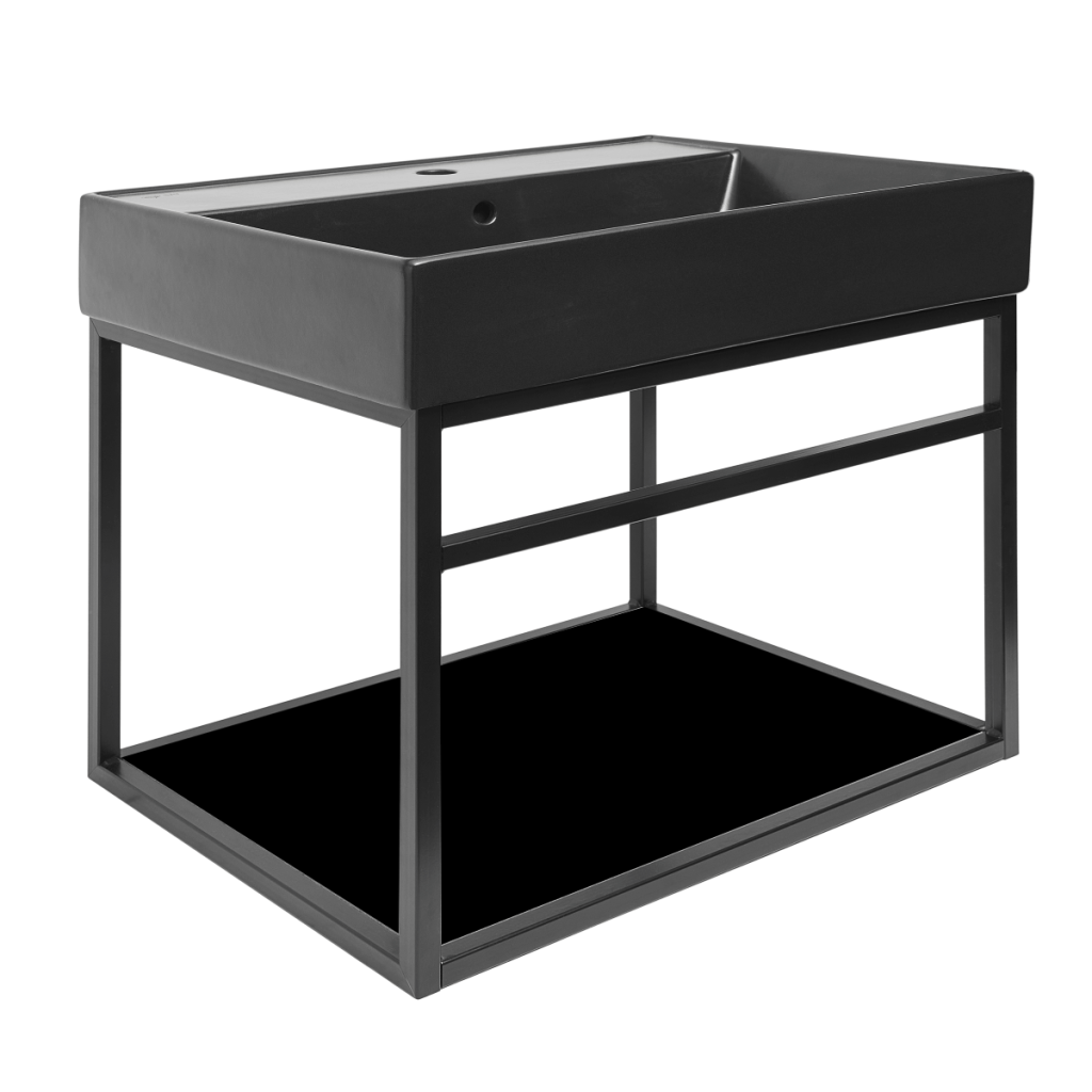 Dotaz na produkt Na splátky ještě dnesKonstrukce Naturel Industrial v černé barvě s keramickým umyvadlem a policí v černé matné barvě je vyrobena s cílem dodat vaší koupelně moderní a industriální vzhled.