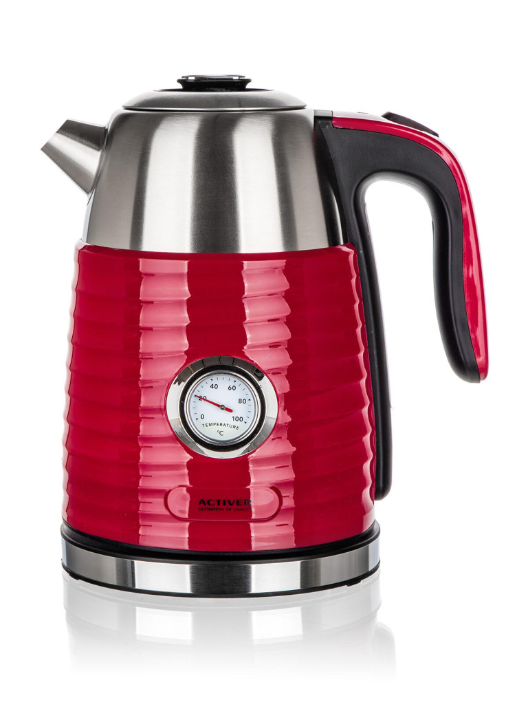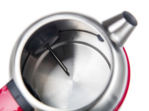 Moderní dvoustěnná varná konvice JUMPER s plochým dnem a nerezovým tělem, o objemu 1,7 l, je designovým doplňkem každé kuchyně.