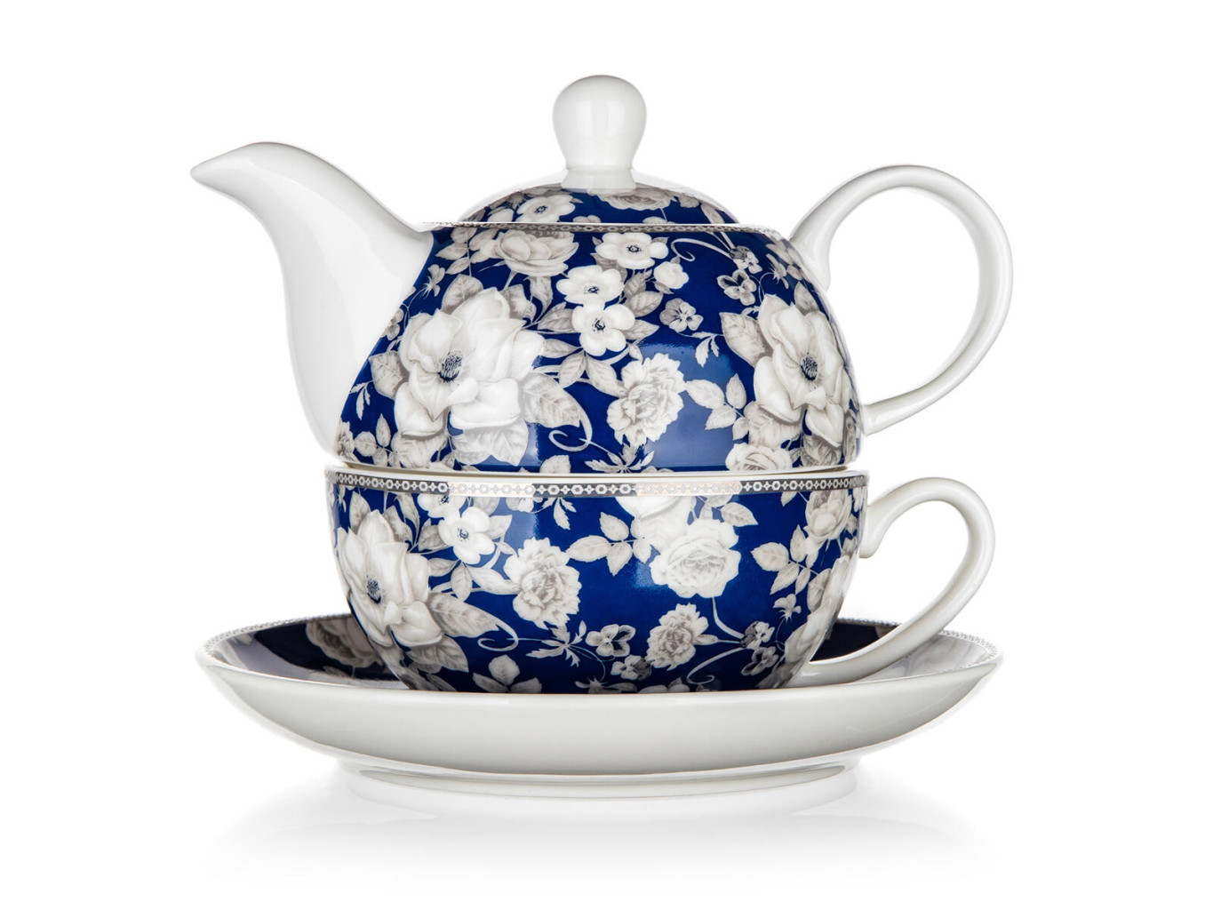 Bílá glazura s dekorem květin.