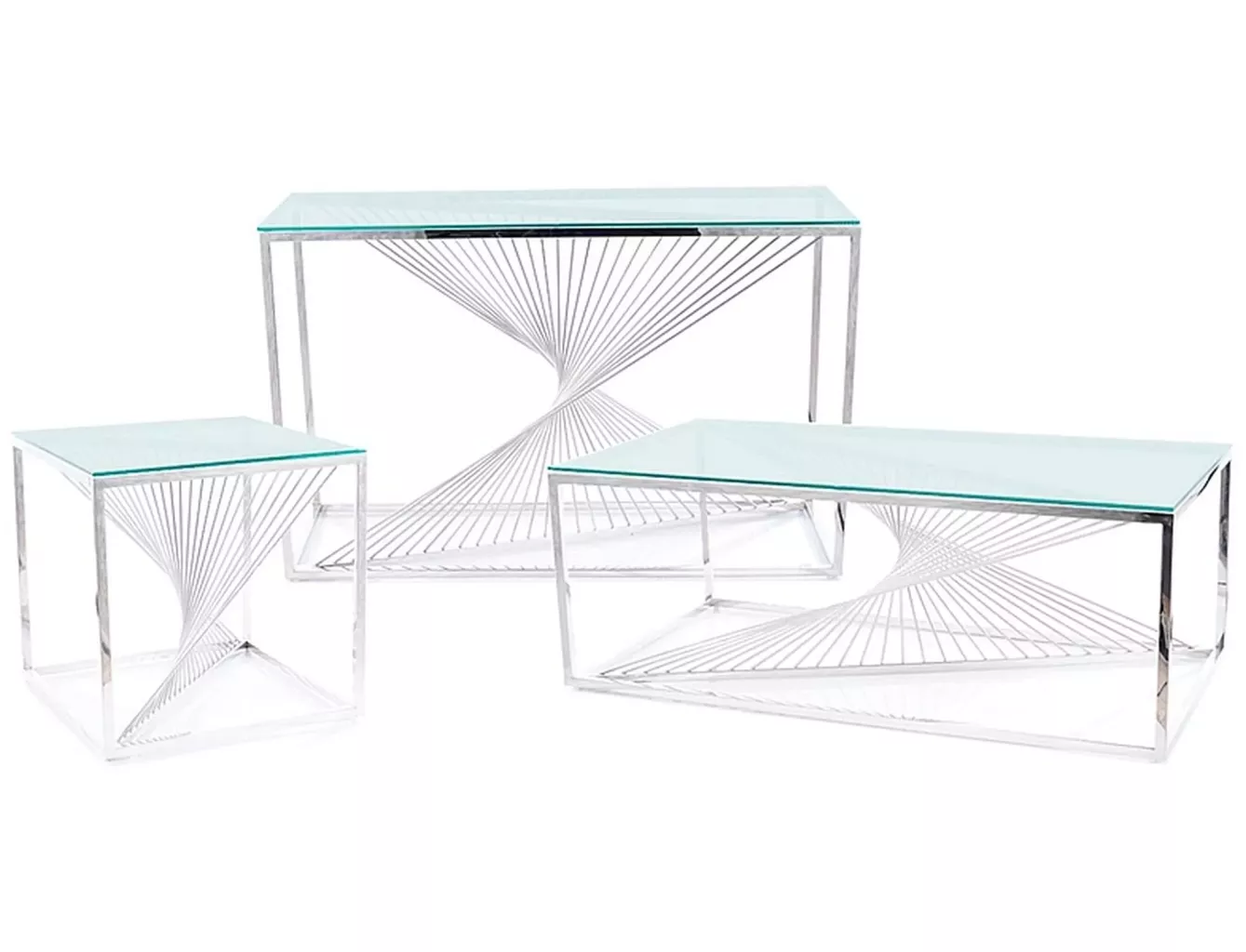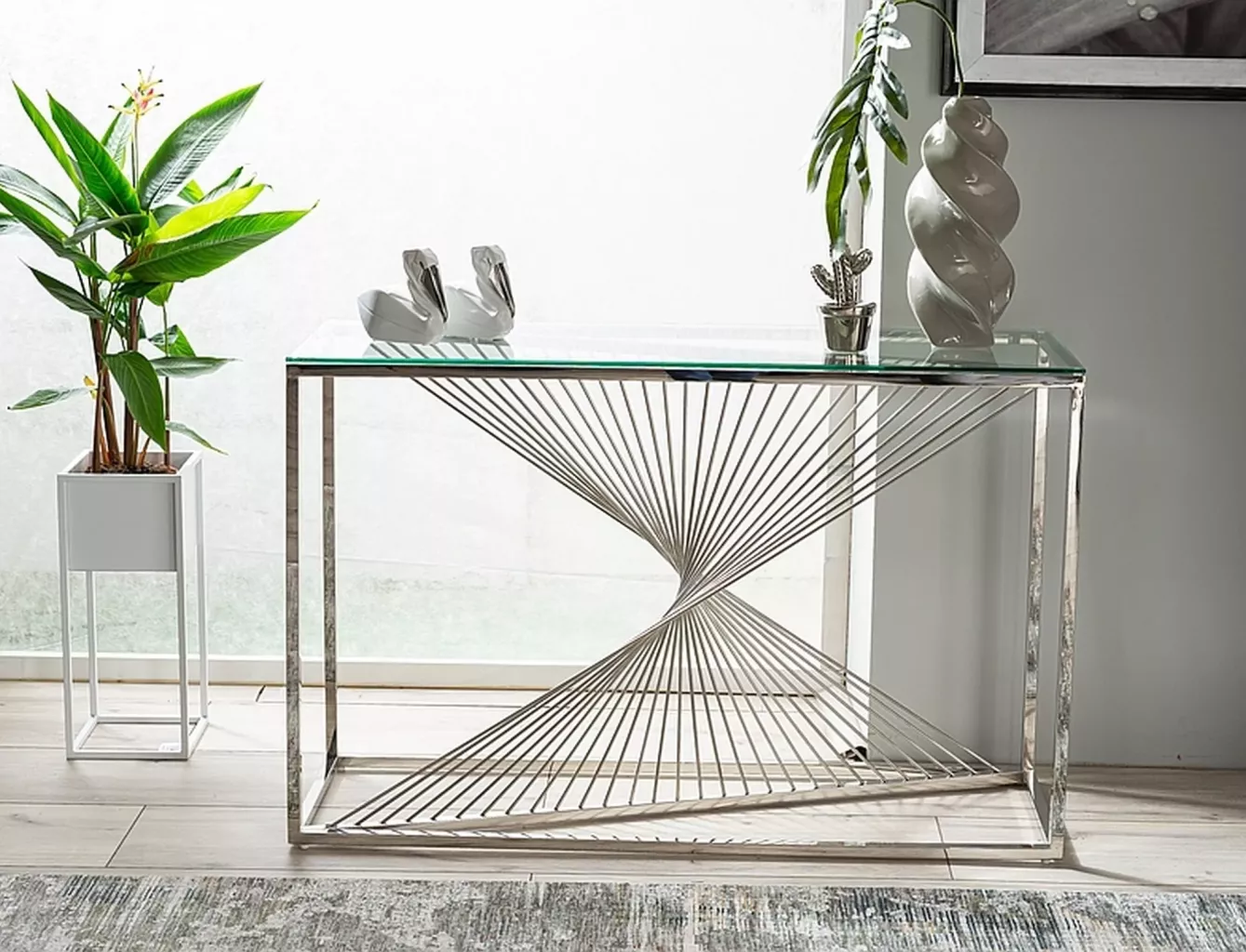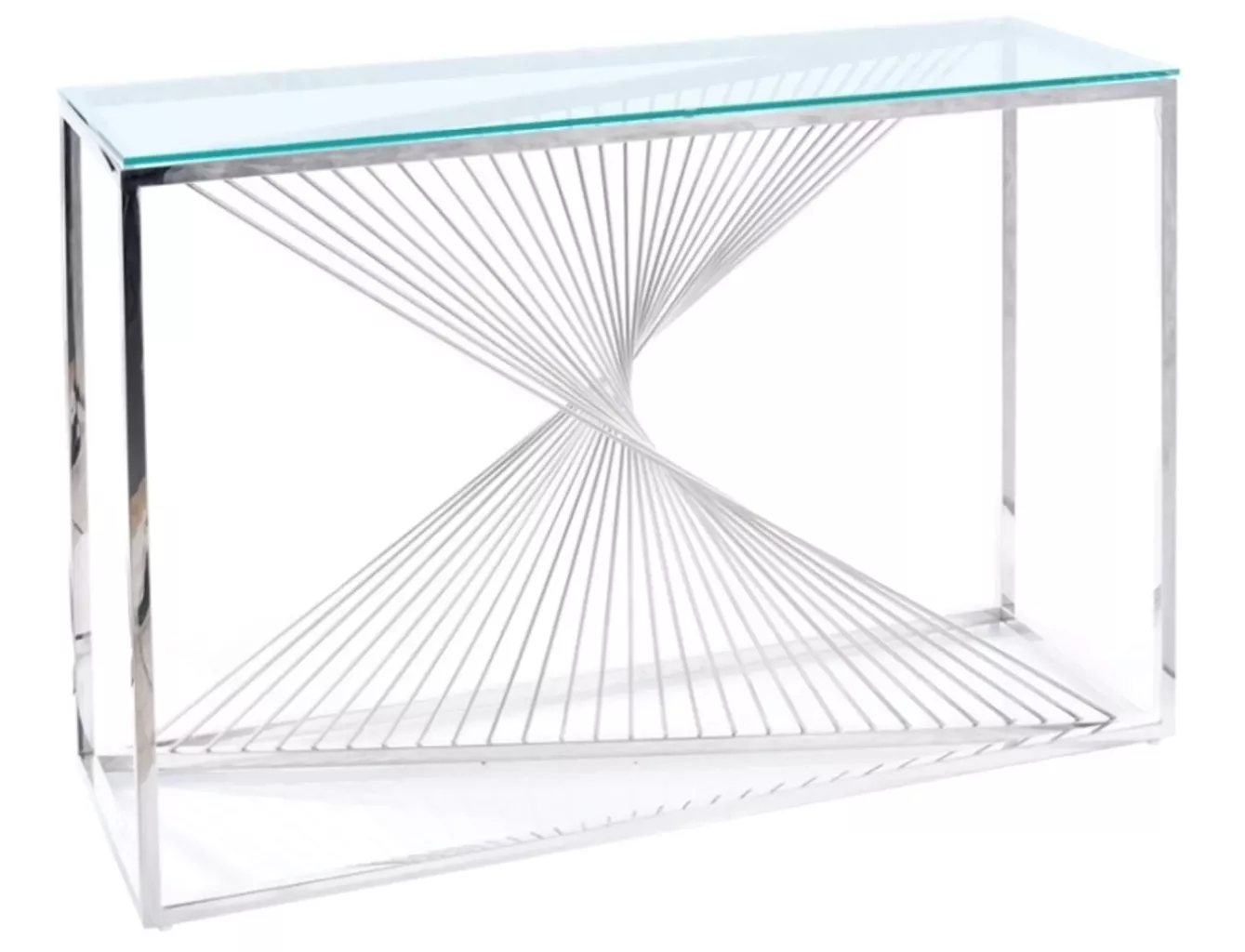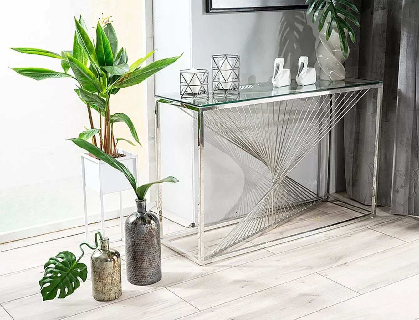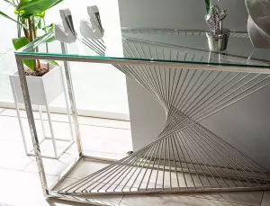 vrchní deska: průhledné tvrzené sklo, rám: nerezová ocel, barva: stříbrná