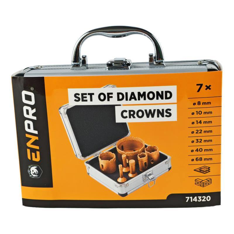 • sada profesionálních vykružovacích diamantových korunek ENPRO se závitem M14 - pro úhlové brusky v praktickém a odolném hliníkovém kufru
