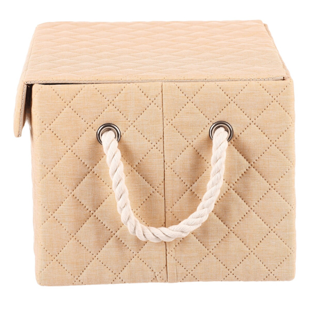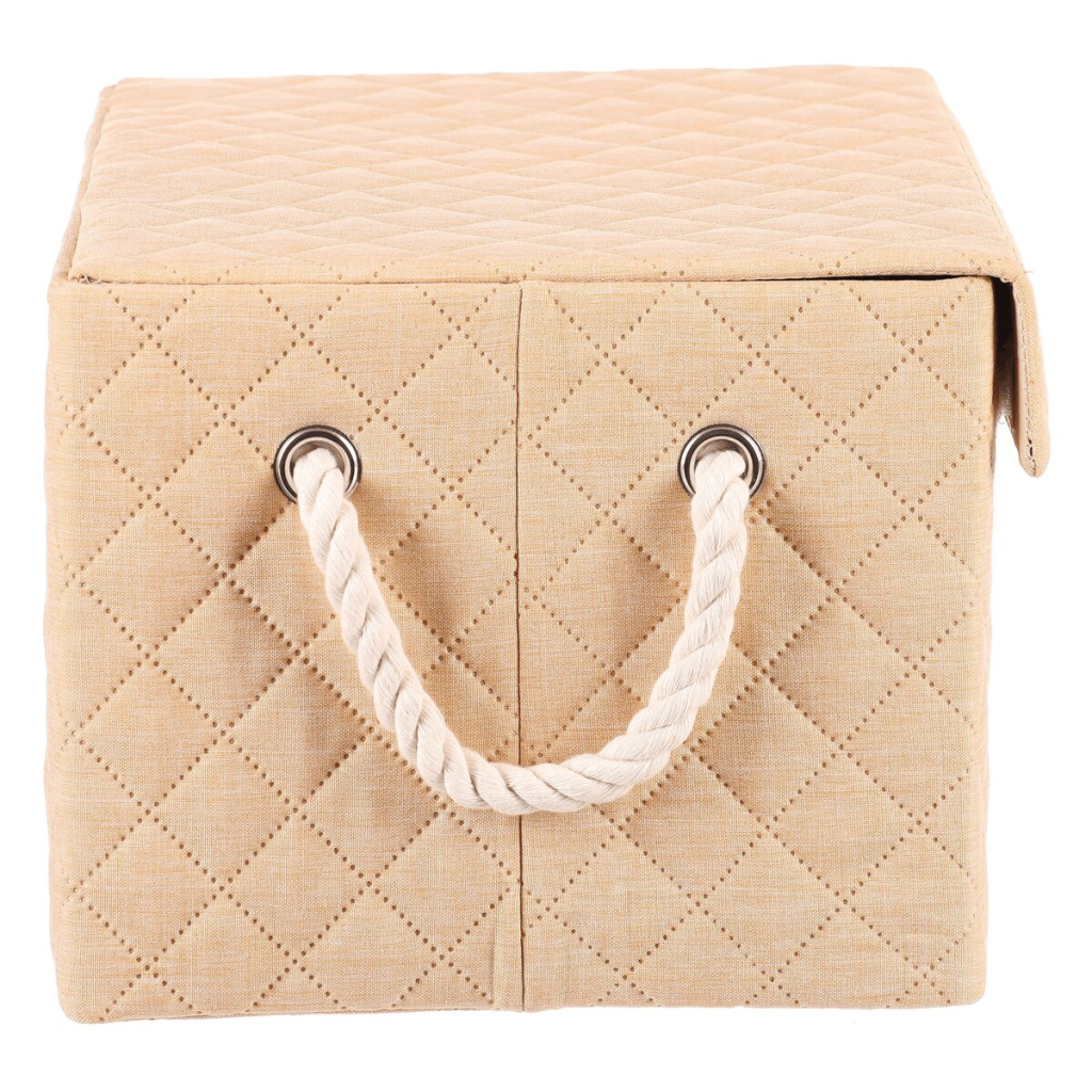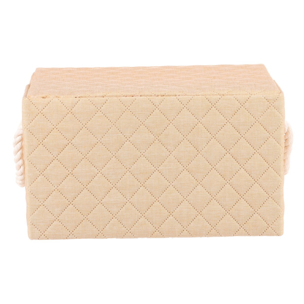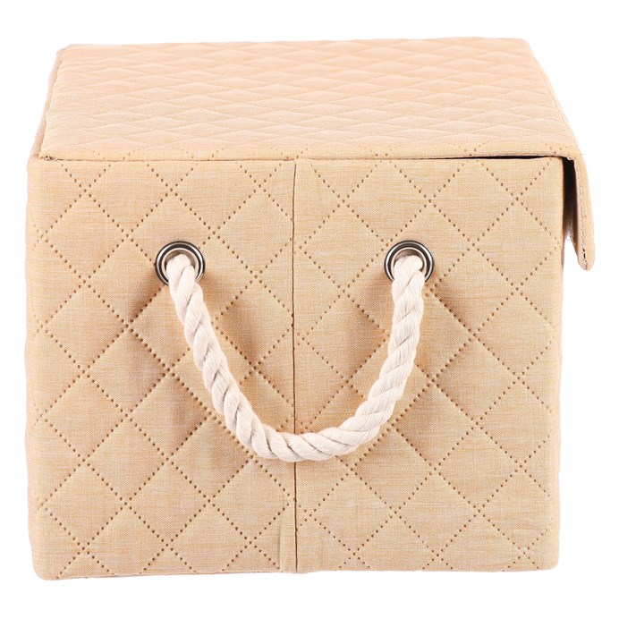 Dotaz na produktLátkový regálový koš v béžové barvě, který lze snadno rozložit, je vybaven dvěma uchy z provázků a potažený hebkou látkou, bude skvělou volbou pro každou domácnost. Jedná se bezesporu o vysoce elegantní a praktické řešení pro uložení prádla nebo jiných věcí k uskladnění.