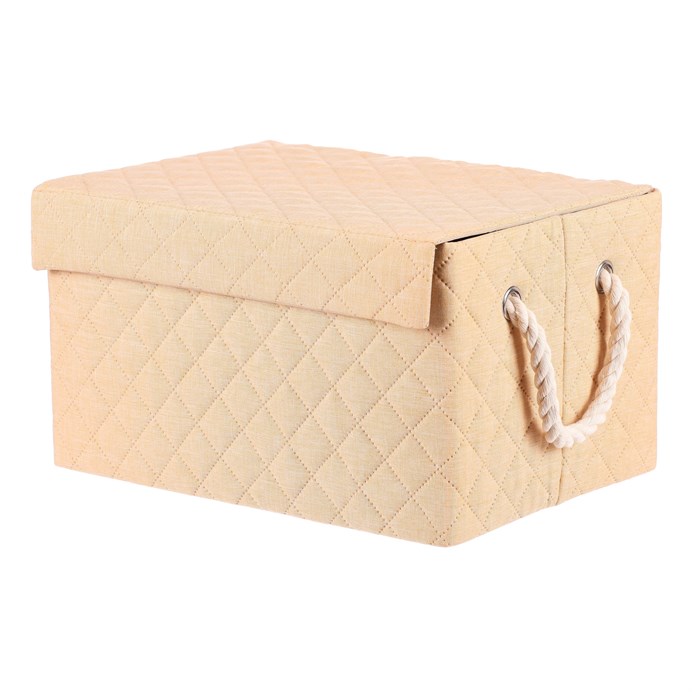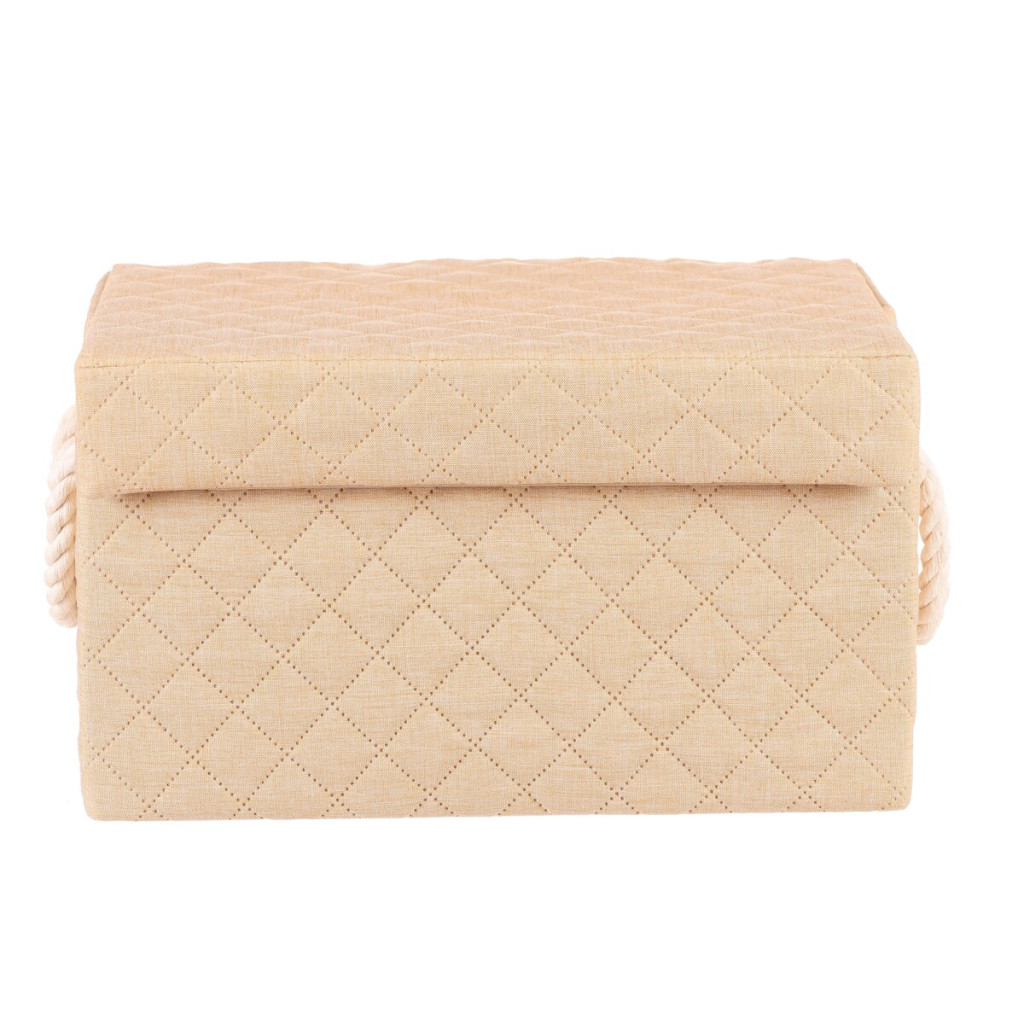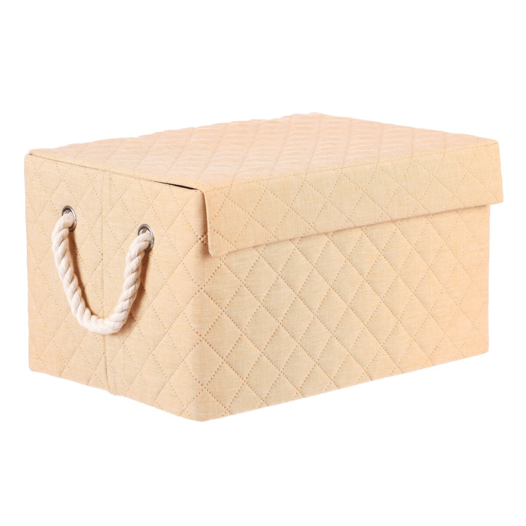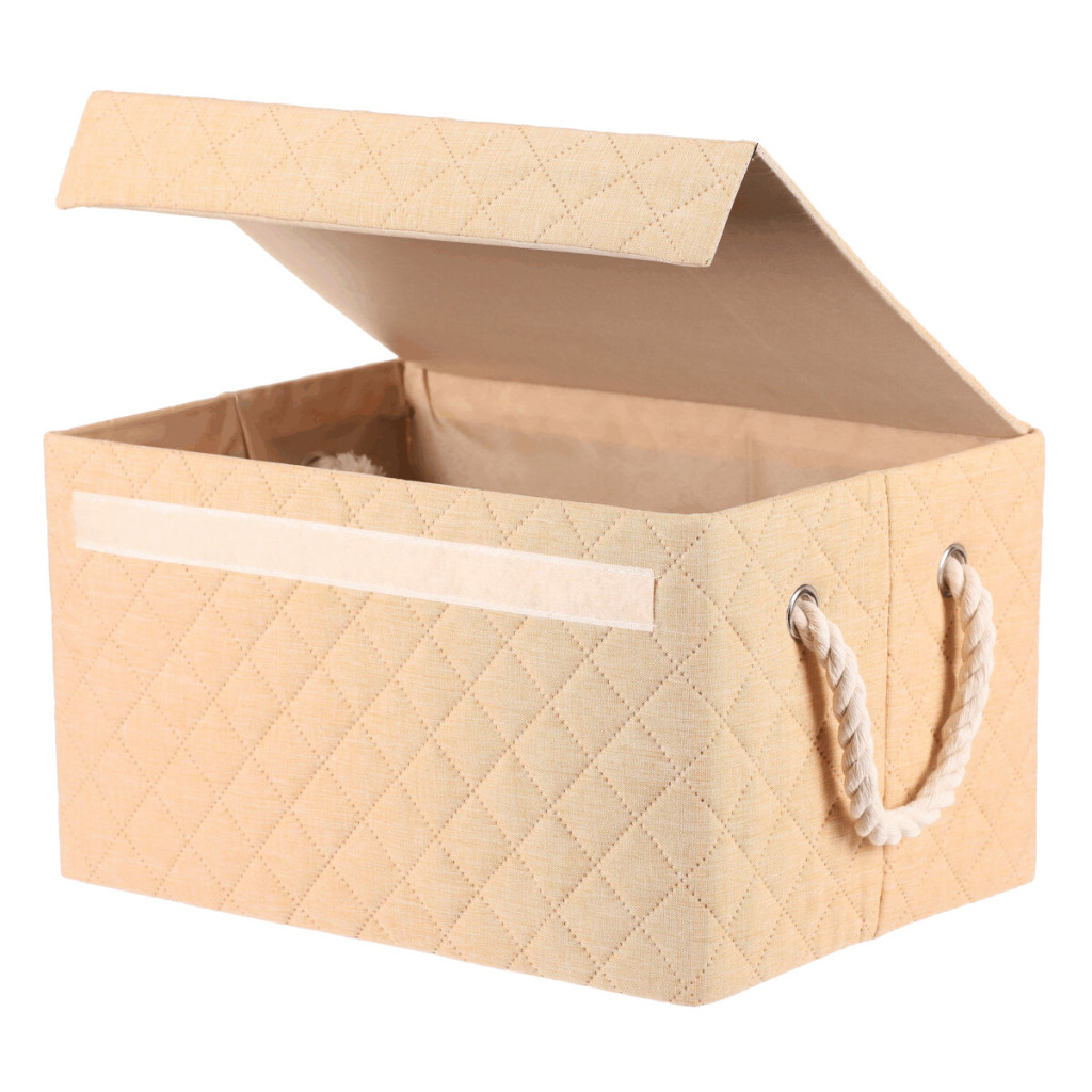 Dotaz na produktLátkový regálový koš v béžové barvě, který lze snadno rozložit, je vybaven dvěma uchy z provázků a potažený hebkou látkou, bude skvělou volbou pro každou domácnost. Jedná se bezesporu o vysoce elegantní a praktické řešení pro uložení prádla nebo jiných věcí k uskladnění.