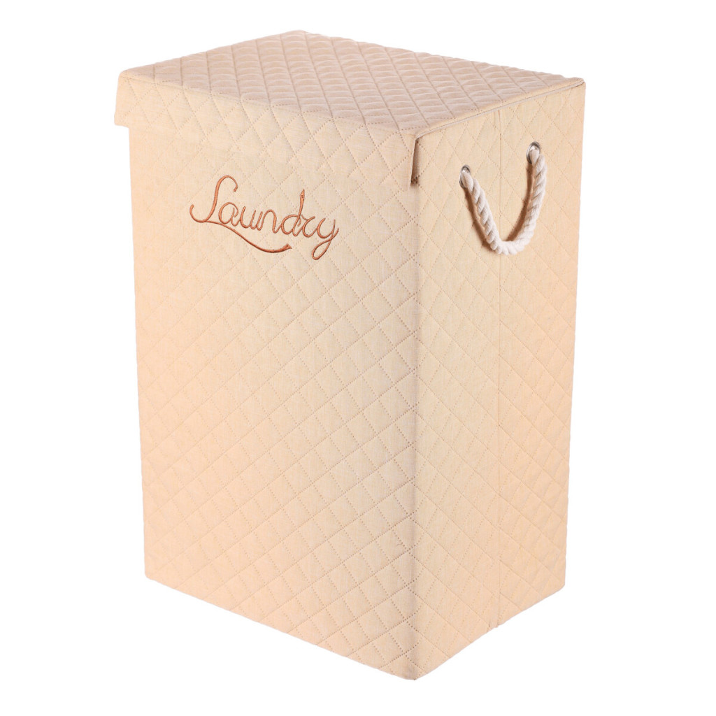Dotaz na produktVysoký látkový koš v béžovém odstínu ve tvaru krabice s uchy z provázků a víkem, navíc potažený hebkou látkou, bude skvělou volbou pro každou domácnost. Praktický a stylový prostředek k tomu, jak efektivně schovat prádlo a zároveň přidat do prostoru na oko příjemný dekorační prvek.